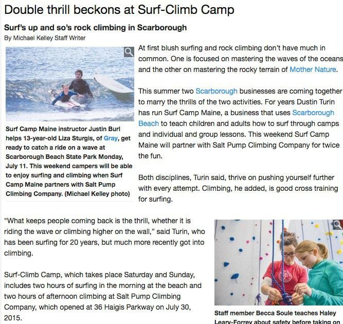 Surf’s Up and so’s Rock Climbing in Scarborough At first blush surfing and rock climbing don’t have much in common. One is focused on mastering the waves of the oceans and the other on mastering the rocky terrain of Mother Nature. This summer two Scarborough businesses are coming together to…