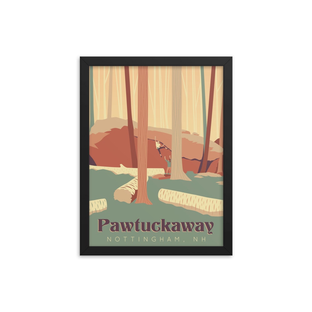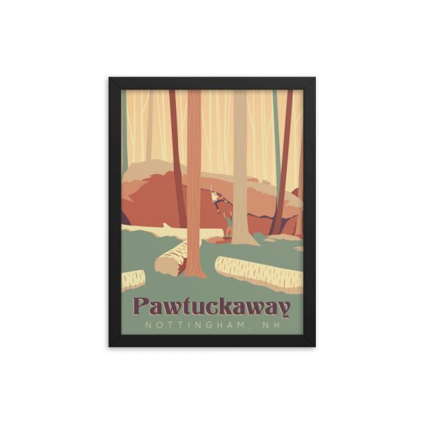 Hidden beneath the dark forests of Nottingham, New Hampshire, lie the boulder fields of Pawtuckaway – “the place of the big buck”. Printed on thick, durable, matte paper, this poster comes framed in a black alder wood frame for an extra touch of class.